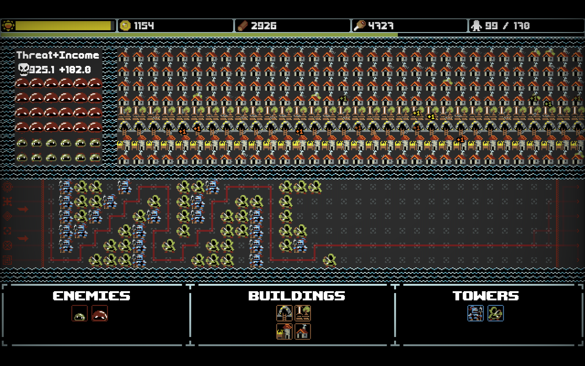 Thanks a ton for playing so deep into it. I'm actively working on adding lots more content, major balancing passes, and improving progression across all three areas (Buildings, towers, and Enemies). It's still early, but seeing people like you push the limits like this is super motivating.